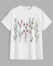 Wildflower Botanical Illustration Summer Cotton Graphic T Shirt - Vintage Artistic, Short Sleeve, Soft Fabric, Comfortable Fit