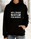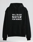 Will Trade Sister for Robux Cozy Cotton Graphic Hoodie with Pocket-Funny Casual,Long Sleeve,Soft Fabric,Comfortable Fit