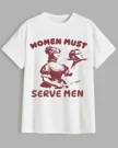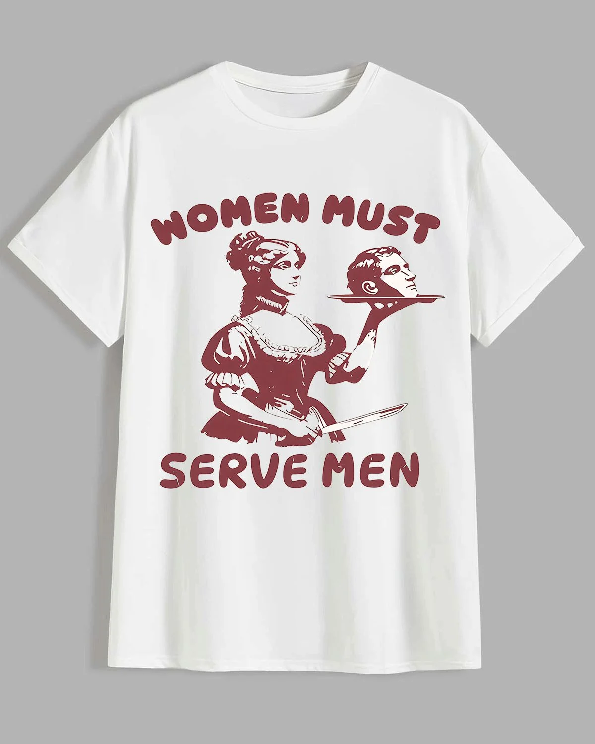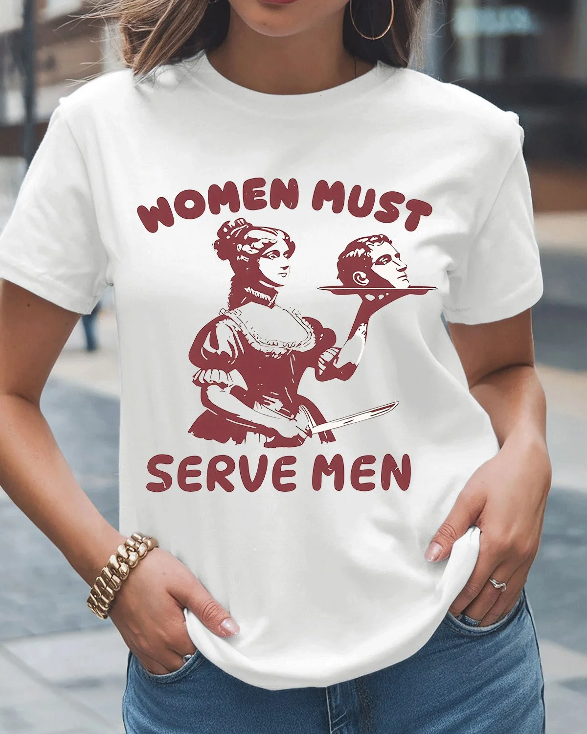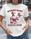 Women Must Serve Men Summer Cotton Graphic T Shirt - Vintage Retro, Short Sleeve, Soft Fabric, Comfortable Fit