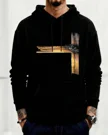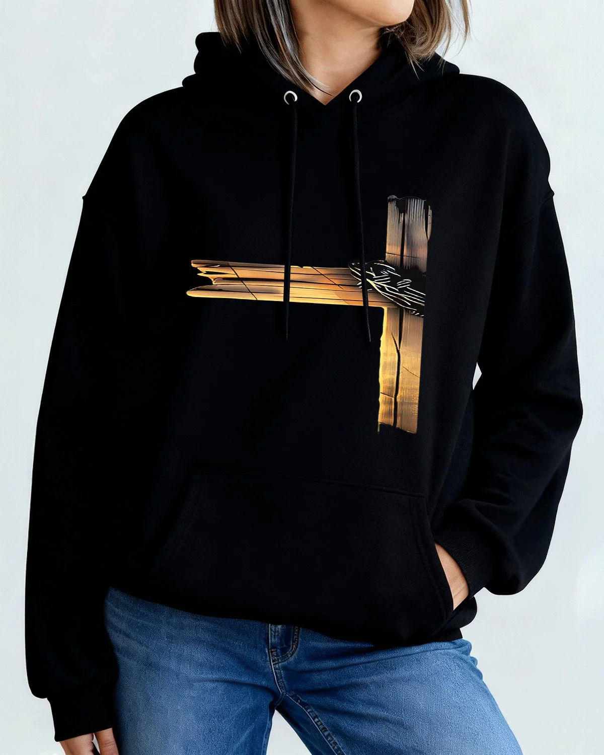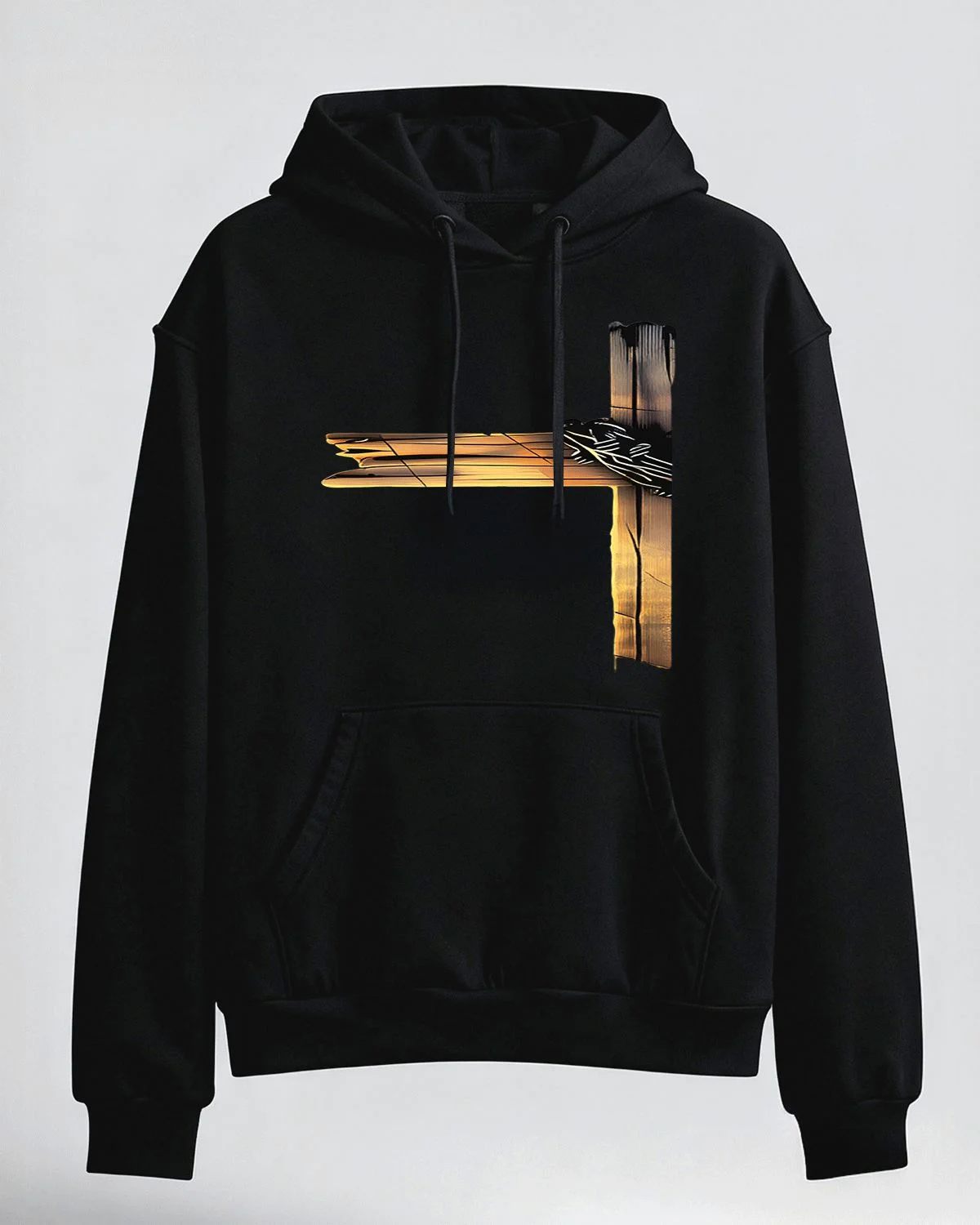 Wooden Cross with Jesus Silhouette Cozy Graphic Hoodie for Men and Women - Casual Vintage, Long Sleeve, Soft Fabric, Comfortable Fit