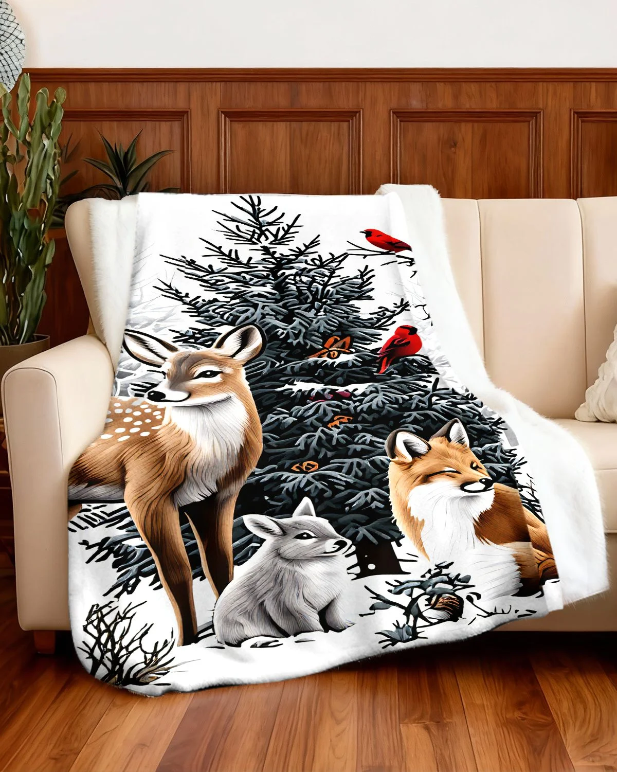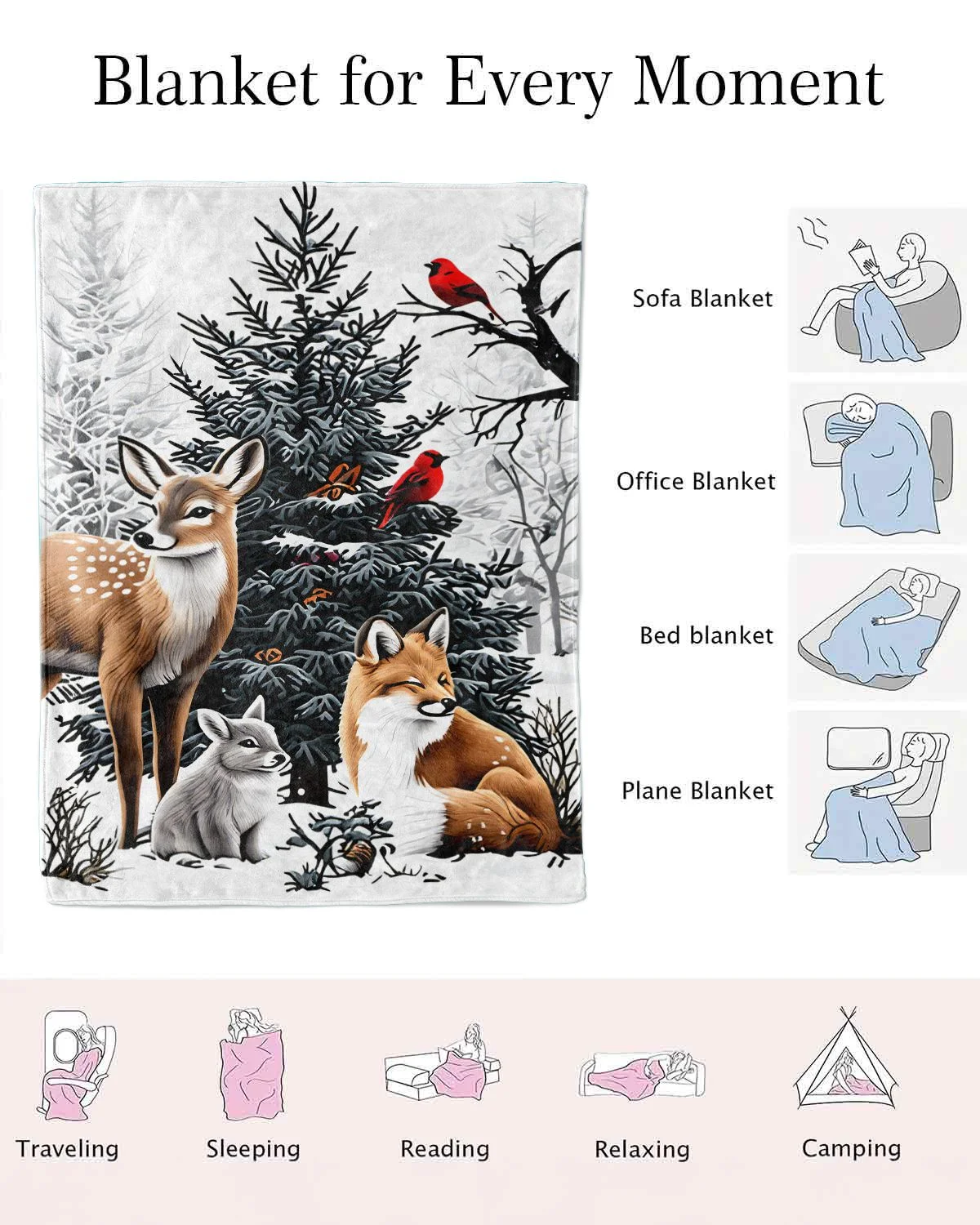 Woodland Animal Winter Blessings Cozy Flannel Blanket-Cozy Classic,Super Soft,Warm,Plush,For Sofa,Bedroom Use