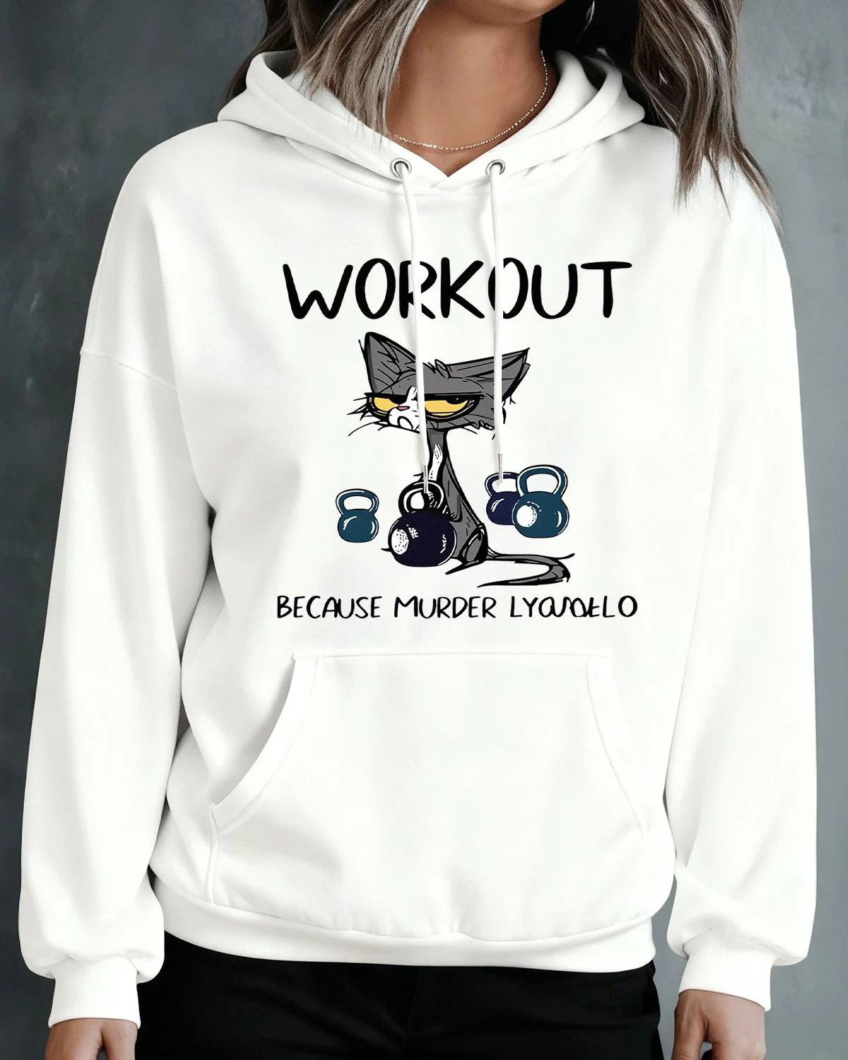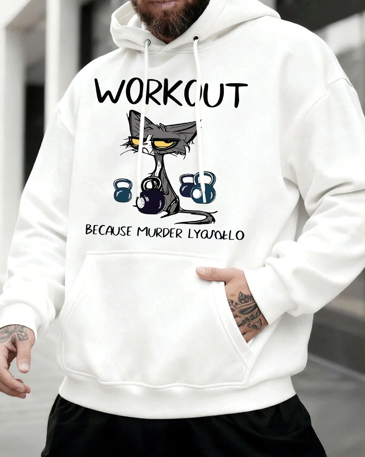 Workout Angry Cat Cozy Graphic Hoodie for Men and Women - Funny Casual, Long Sleeve, Soft Fabric, Comfortable Fit