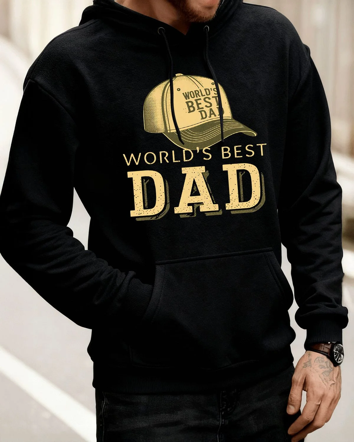 World's Best Dad Hat Cozy Graphic Hoodie for Men and Women - Vintage Classic, Long Sleeve, Soft Fabric, Comfortable Fit
