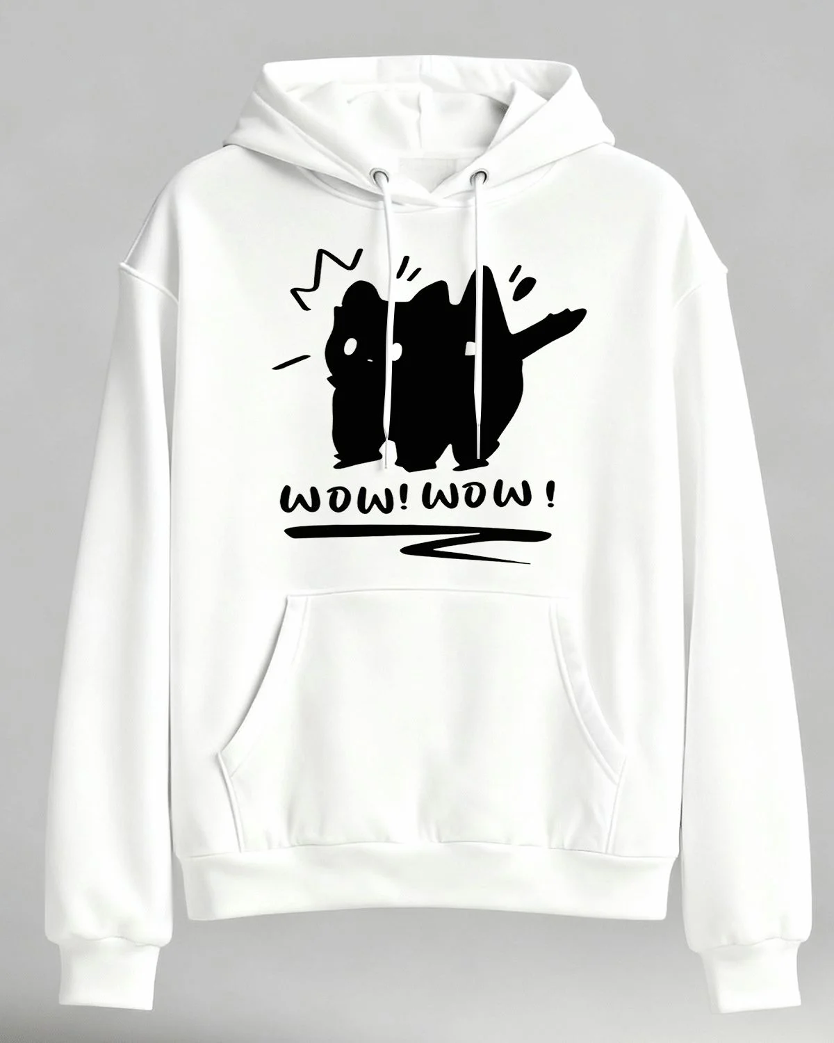 Wow Wow Cat Cartoon Cozy Graphic Hoodie for Men and Women - Casual Funny, Long Sleeve, Soft Fabric, Comfortable Fit