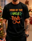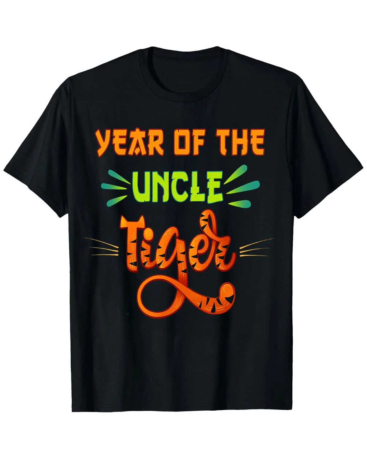 Year of the Uncle Tiger New Year Summer Cotton Graphic T Shirt - Casual Vintage, Short Sleeve, Soft Fabric, Comfortable Fit