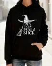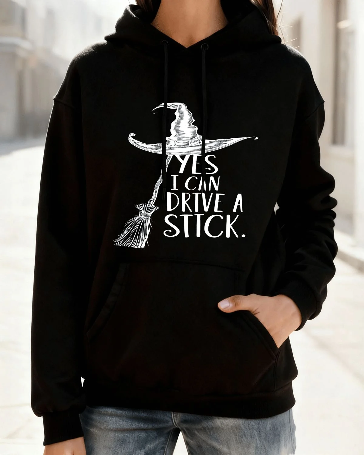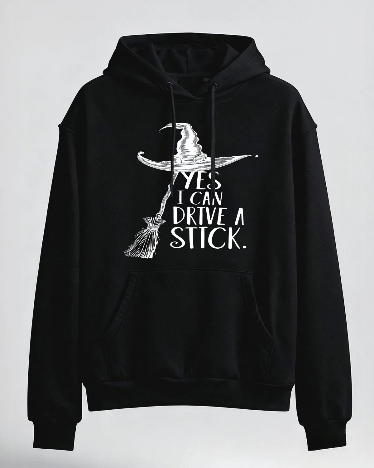 Yes I Can Drive A Stick Witch Hat Broom Summer Cozy Graphic Hoodie-Funny Vintage,Long Sleeve,Soft Fabric,Comfortable Fit