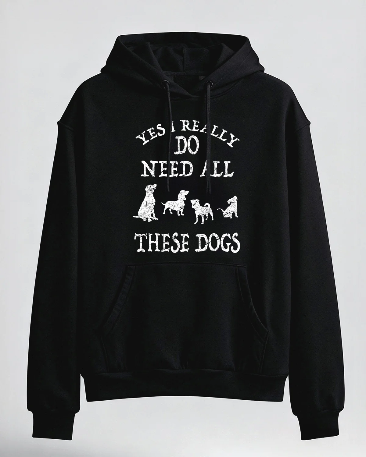 Yes I Really Do Need All These Dogs Cozy Cotton Graphic Hoodie-Casual Funny,Long Sleeves,Soft Fabric,Comfortable Fit
