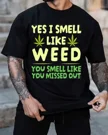 Yes I Smell Like Weed You Smell Like You Missed Out Summer Cotton Graphic T Shirt-Casual Funny,Short Sleeve,Soft Fabric,Comfortable Fit