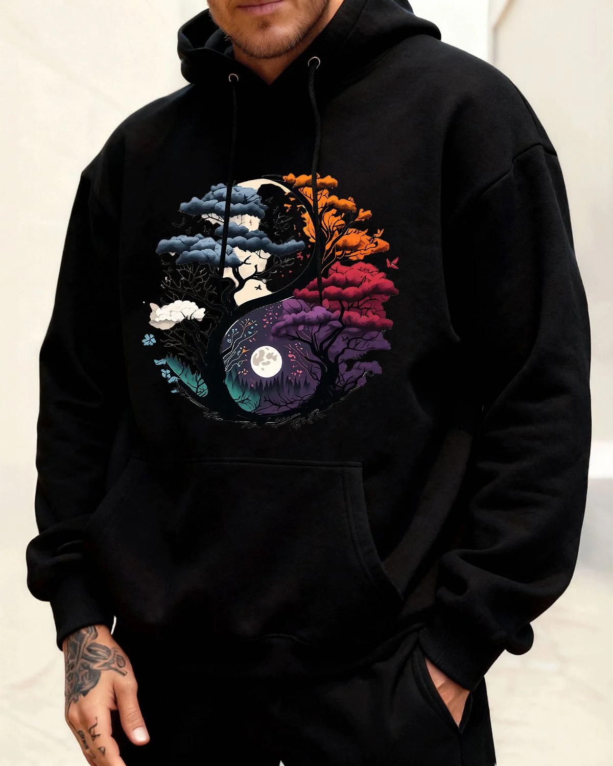 F-Caw-F Retro Raven Summer Cozy Graphic Hoodie-Vintage Distressed,Long Sleeve,Soft Fabric,Comfortable Fit
