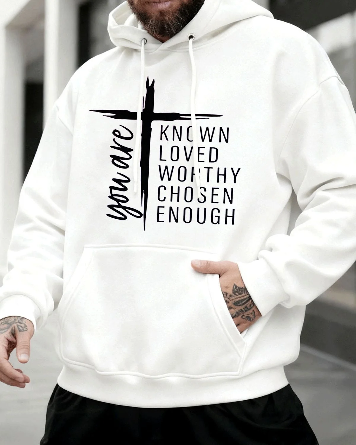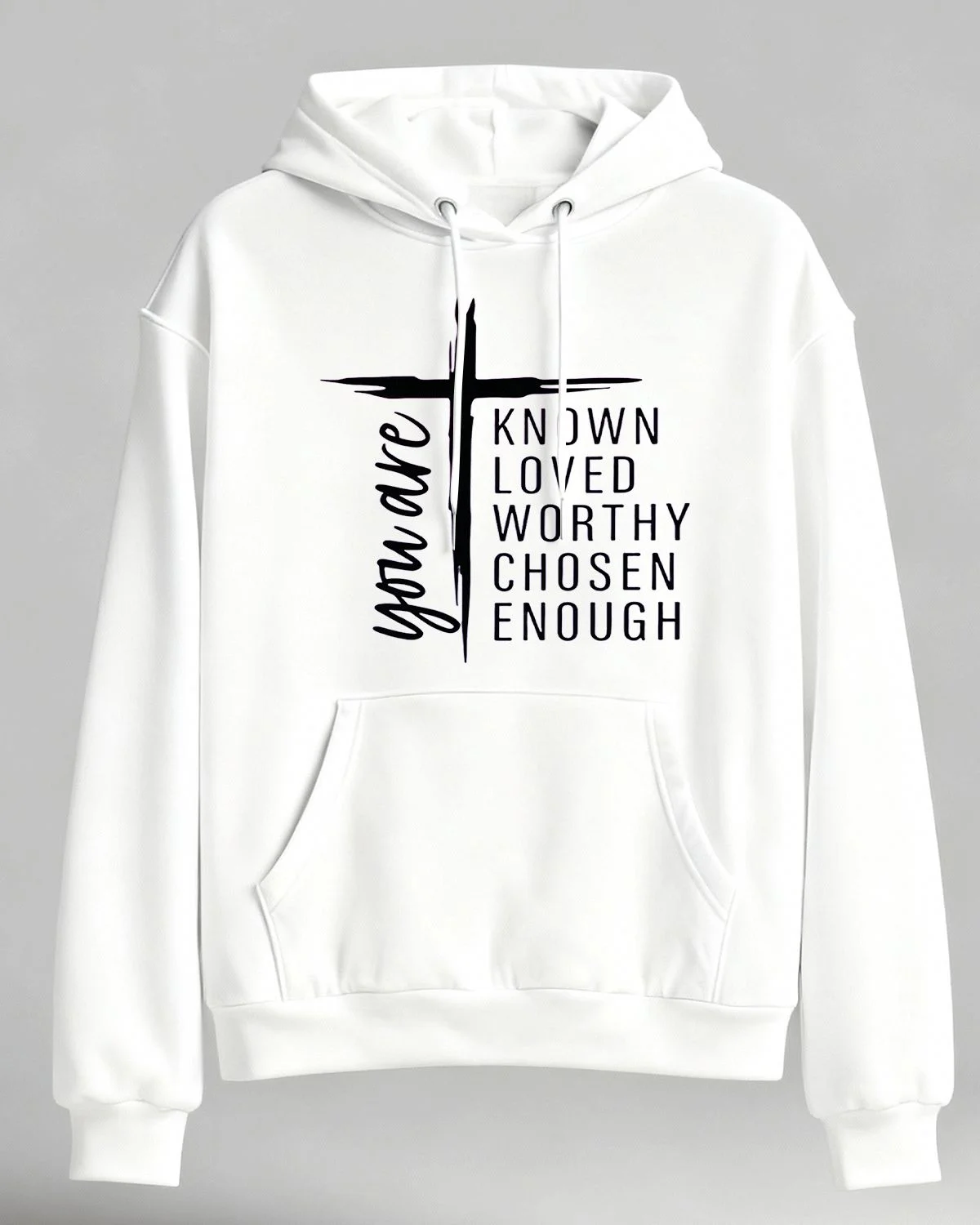 You Are Known Loved Worthy Chosen Enough Cozy Graphic Hoodie for Men and Women - Casual Vintage, Long Sleeve, Soft Fabric, Comfortable Fit
