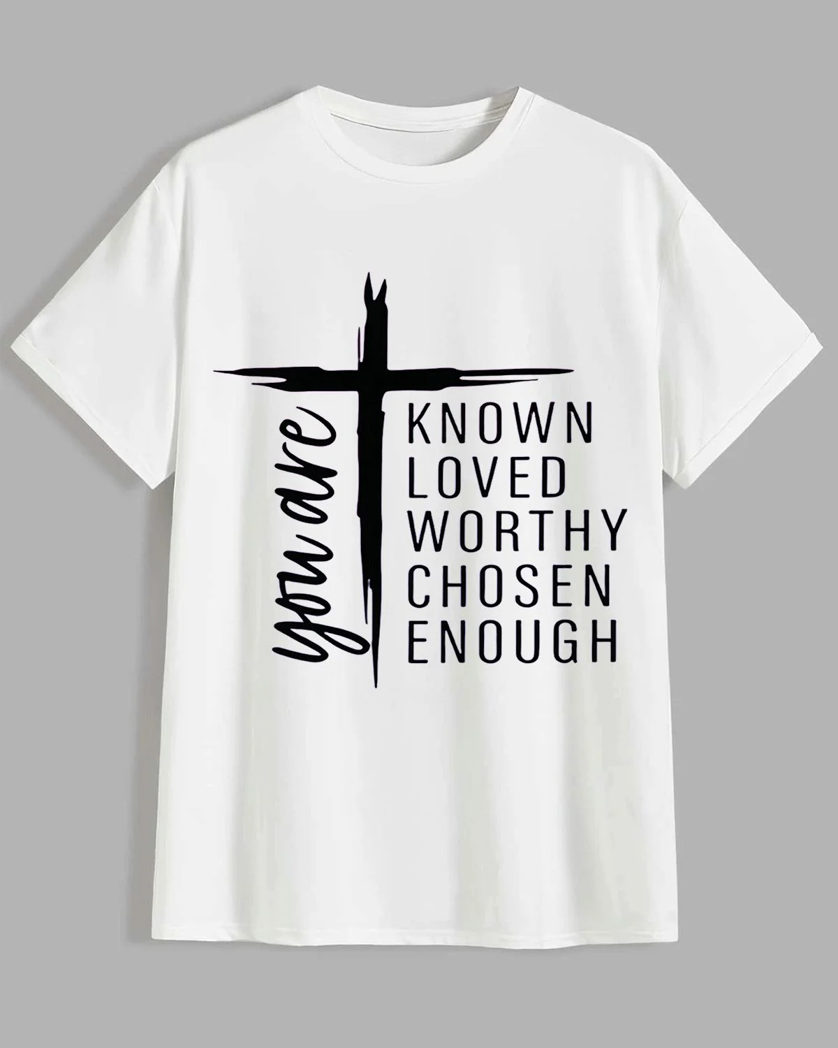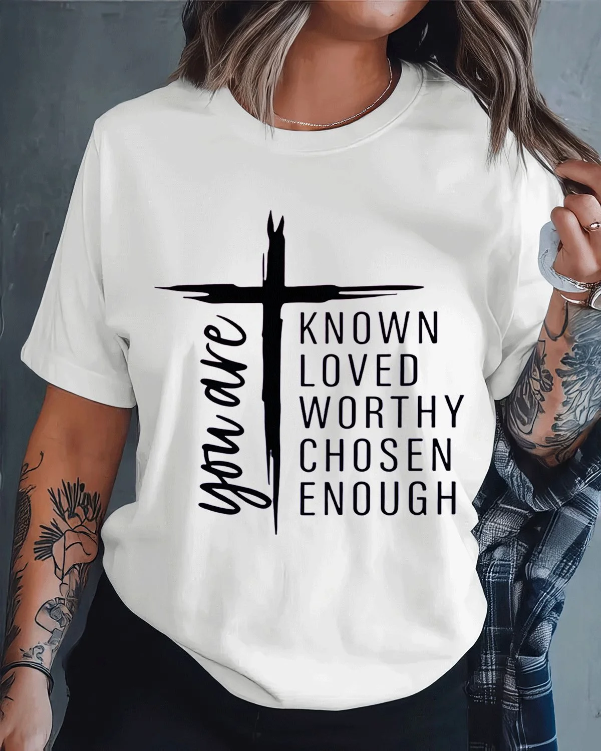 You Are Known Loved Worthy Chosen Enough Summer Cotton Graphic T Shirt - Casual Vintage, Short Sleeve, Soft Fabric, Comfortable Fit