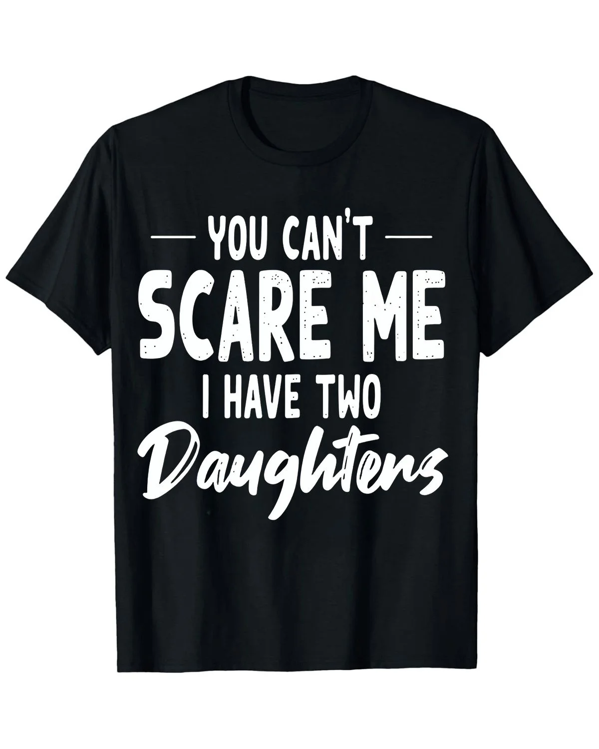 You Can't Scare Me I Have Two Daughters Summer Cotton Graphic T Shirt - Casual Funny, Short Sleeve, Soft Fabric, Comfortable Fit
